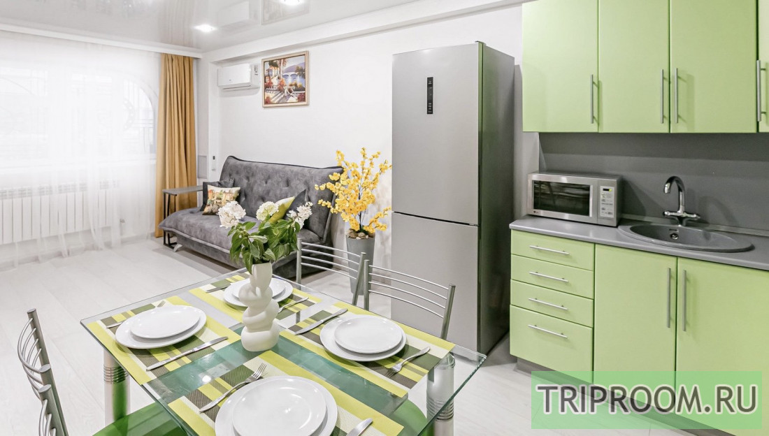 Сдается двухкомнатная квартира-студия с ремонтом, новой мебелью и бытовой техникой. Квартира находится на первом этаже трехэтажного частного дома с автономным отоплением и водоснабжением. У нас нет перебоев воды и включаем отопление раньше чем включают его в городе. Вам не надо входить в общий подьезд, подниматься вверх по лестнице, так как она находится на первом этаже с отдельным выходом на улицу. Это очень удобно для семей с детьми, пожилым людям, для минимизации контактов с другими людьми, что очень актуально при пандемии. Кухня совмещена с гостиной, что очень удобно. Имеется две изолированные спальни. В одной спальне одна двуспальная кровать, во второй спальне две однокомнатные кровати. Имеется WI-FI, спутниковое телевидение. Находится в центре города, в 5 минутах от рынка и в 10 минутах от парка
